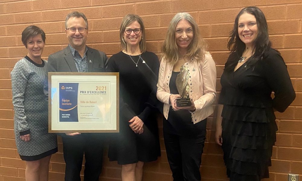 Martine Vallières, la directrice générale de Beloeil, remercie toutes les équipes responsables de la conception et de la construction du Centre aquatique pour leur travail.