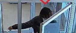 L’homme de race noire âgé dans la vingtaine porte un violent coup de poing au visage d’une commis âgée dans la soixantaine.
