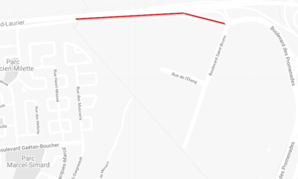 Le boulevard des Promenades à Saint-Bruno-de-Montarville est fermé à la circulation dans les deux sens pour un temps indéterminé.
